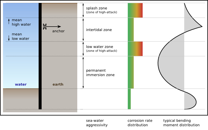The US Army Corps of Engineers in their REMR Technical Note EM-CR-1.6: The Use of A690 Mariner Steel Sheet Pilings states the following: